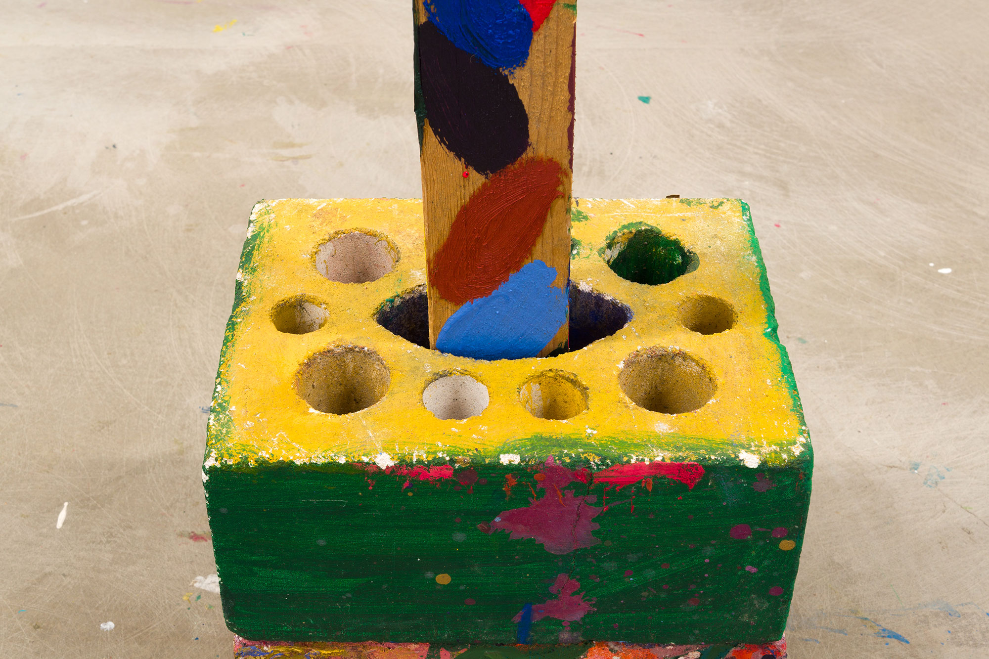 Egg tempera and oil on wood, acrylic on bricks