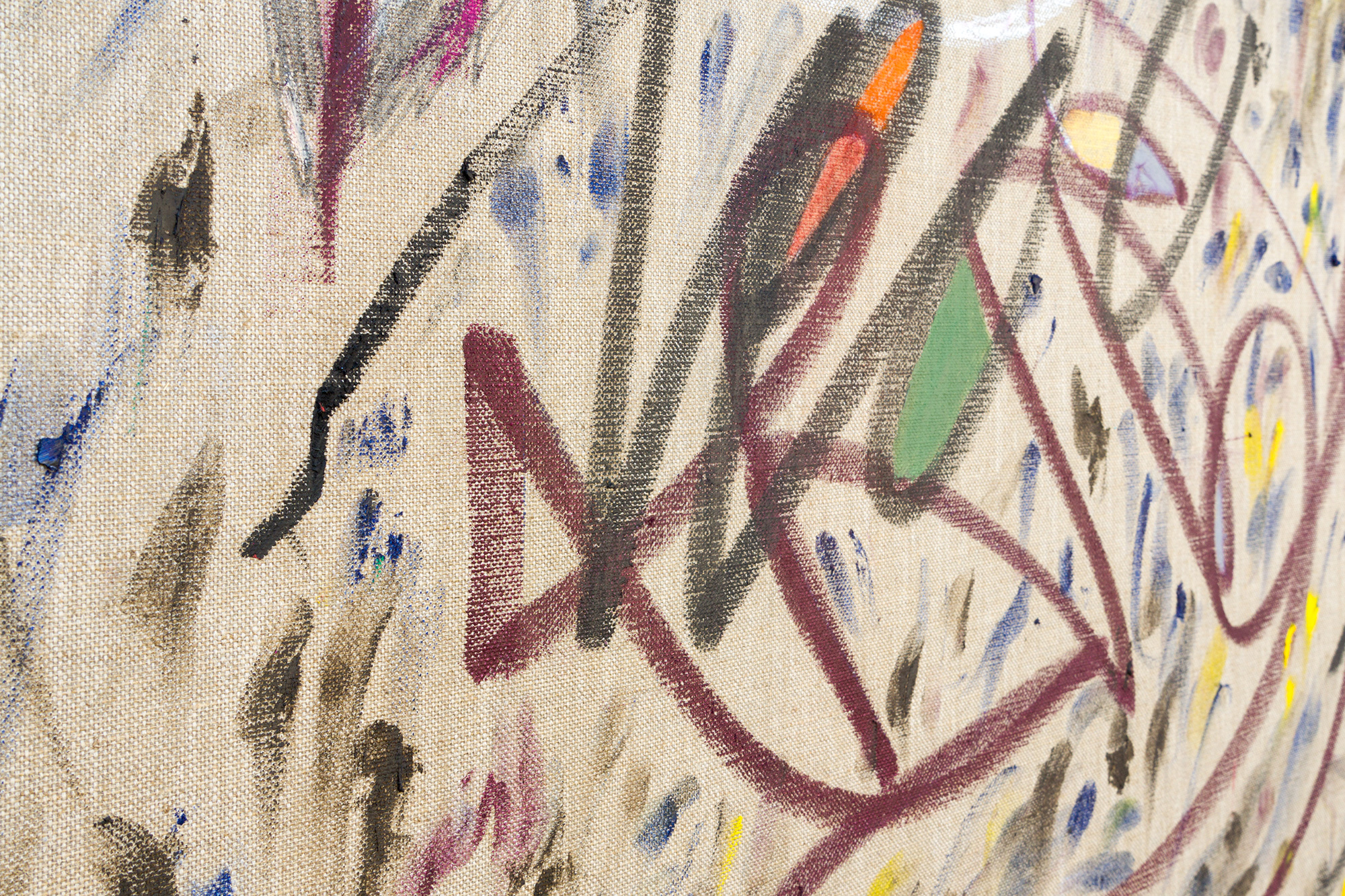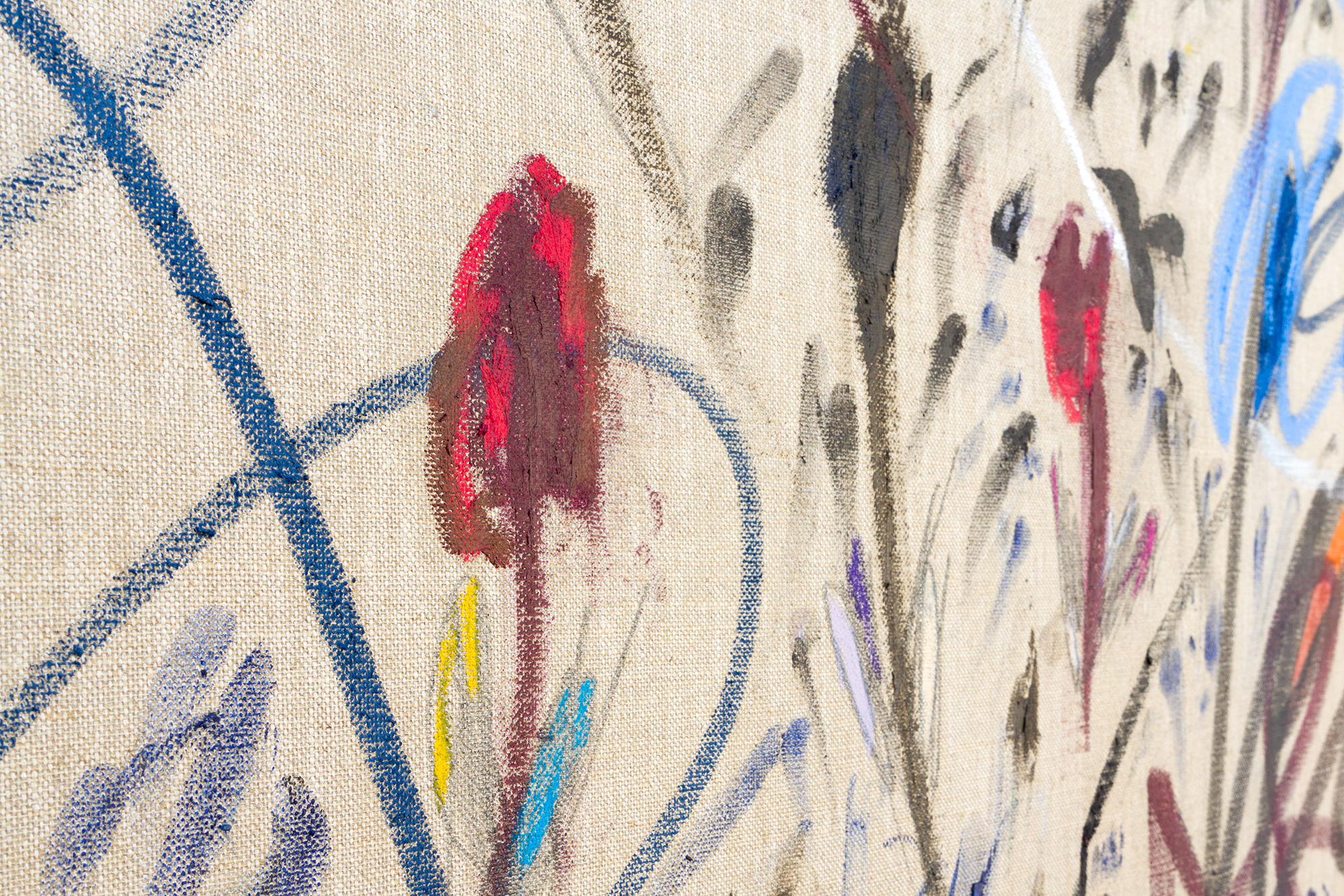 Acrylic, crayon and chalk on canvas