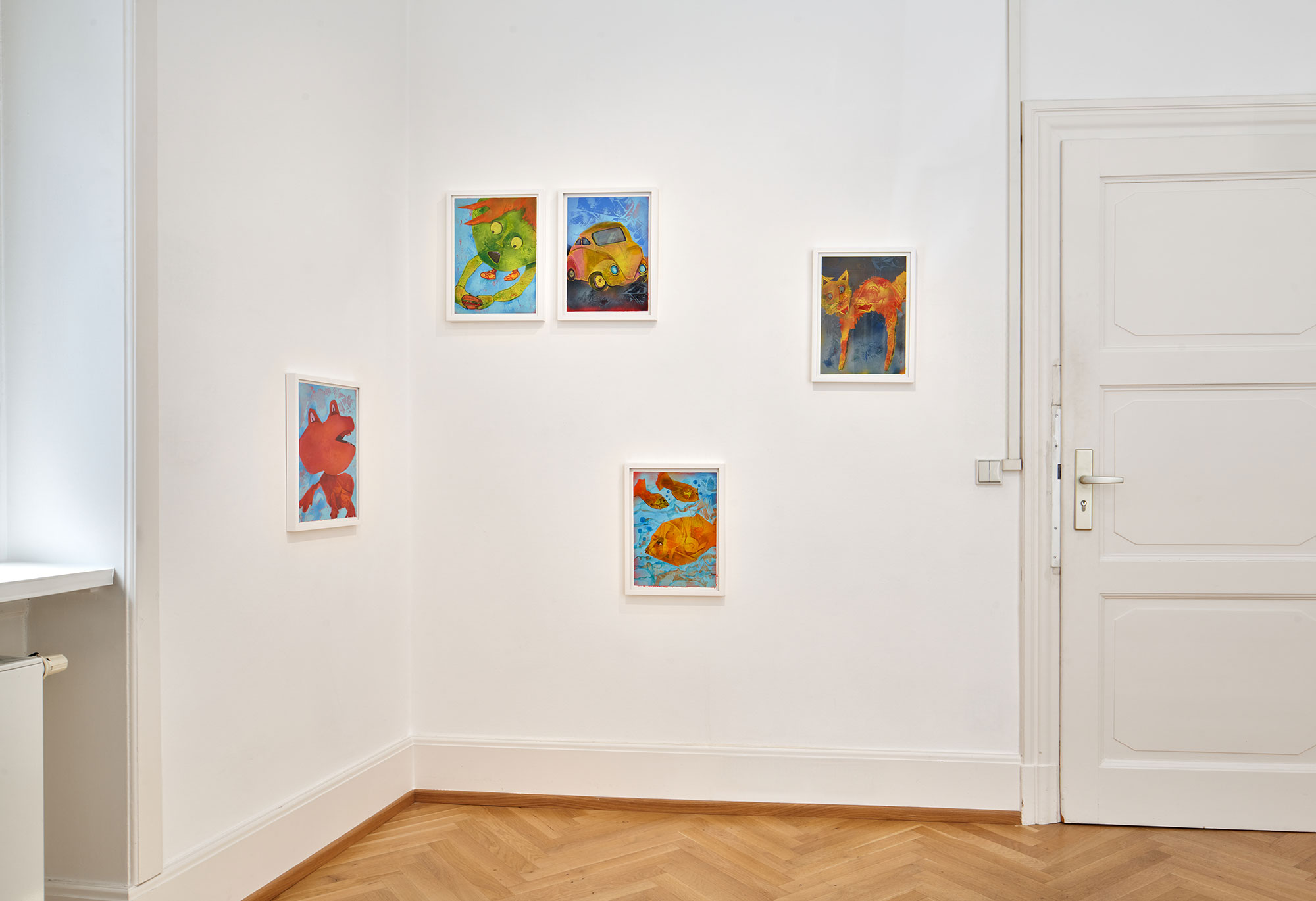 The exhibition presents a vibrant series of paintings that depart from Elhassan's signature style of portraiture and distinct human figures. Instead, this time she focuses on iconic childhood objects. Imagine walking through your childhood home, each room filled with almost forgotten items. Elhassan's paintings capture this essence - a toy car that once raced across imaginary highways, a rabbit from her neighbours that she always wanted to visit, a cat that was both friend and foe. The centerpiece, "Pillow Amir" is inspired by a childhood memory where four-year-old Amna declared her pillow to be her son named Amir and made her whole family treat him as such.